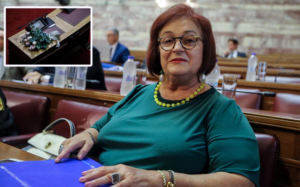 Ένα μπουκέτο ροζ τριαντάφυλλα άφησαν στο έδρανό της Μαριέττας Γιαννάκου, στη Βουλή, συγκινημένοι οι συνάδελφοί της