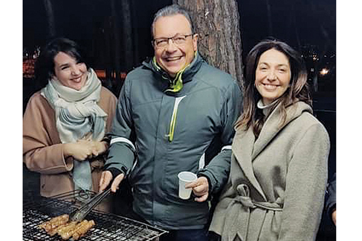 Το έψησε το λουκάνικό του ο Σωκράτης Φάμελλος. Βρέθηκε προχθές το βράδυ στο πανηγύρι του Αη Τρύφωνα, στη Θέρμη Θεσσαλονίκης.