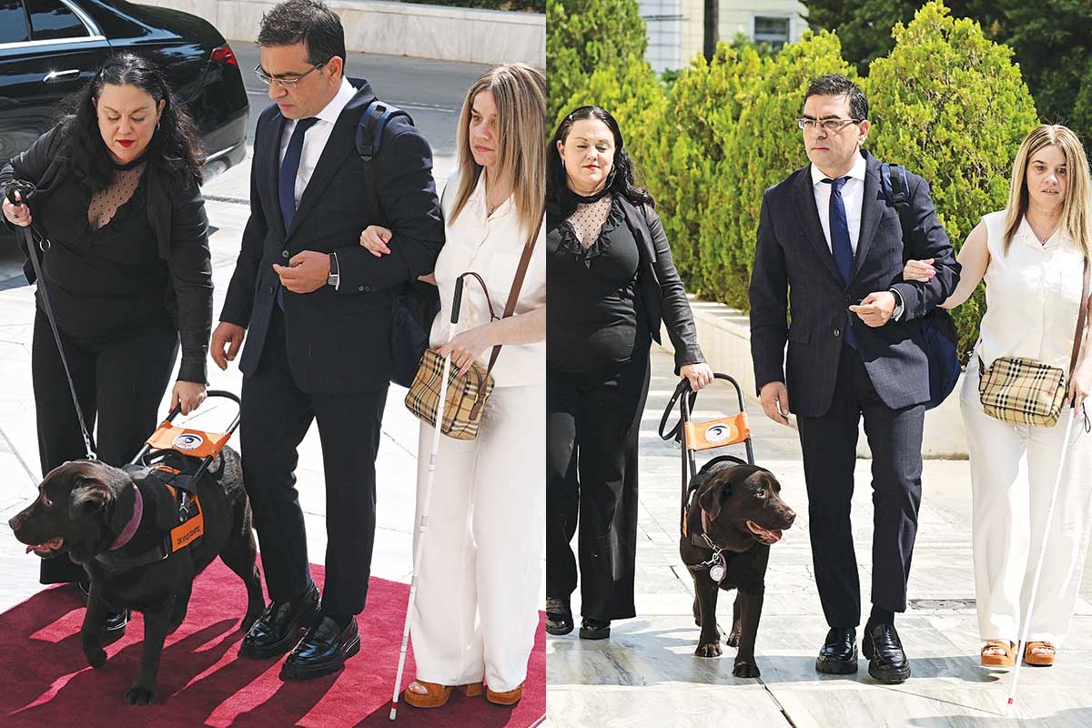 Μπήκε στο Κοινοβούλιο συνοδευόμενος από δύο γυναίκες με προβλήματα όρασης, την Ιωάννα Γκέρτσου με τον σκύλο οδηγό της και την Αγκάθα Ακάρα, μέλος της Εθνικής Συνομοσπονδίας Ατόμων με Αναπηρία (ΕΣΑμεΑ).