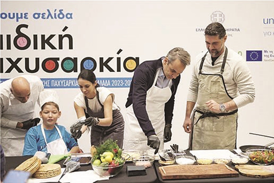 Ο Κυριάκος Μητσοτάκης, στο πλαίσιο της εκδήλωσης για την παρουσίαση του προγράμματος «Εθνική Δράση κατά της Παιδικής Παχυσαρκίας στην Ελλάδα», στο Ζάππειο, φόρεσε ποδιά και μαγείρεψε υγιεινό γύρο… Ο σεφ Πάνος Ιωαννίδης έδειξε πώς, με απλά, υγιεινά υλικά και συστατικά, είναι δυνατόν να ετοιμάσουμε γευστικές συνταγές. Στον Απόστολο Τζιτζικώστα ο δημοφιλής σεφ έδειξε πώς να φτιάχνει ριζότο και στον Κυριάκο Μητσοτάκη σουβλάκι!