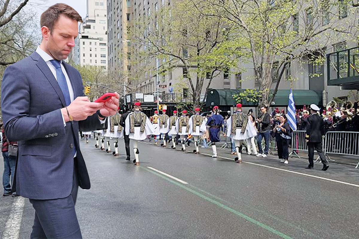 Η παρουσία της Φιλαρμονικής της Κέρκυρας έδωσε επίσης περισσότερο ελληνικό χρώμα στις εκδηλώσεις. Ο Στέφανος Κασσελάκης, πάντως, ντυμένος με το κοστούμι του και τη γαλάζια του γραβάτα, το ίδιο και ο σύζυγός του Τάιλερ, στη βόλτα που έκαναν στην 5η Λεωφόρο έγιναν θερμά δεκτοί από τους Ελληνοαμερικανούς, που τους φωτογράφιζαν… δίχως αύριο!