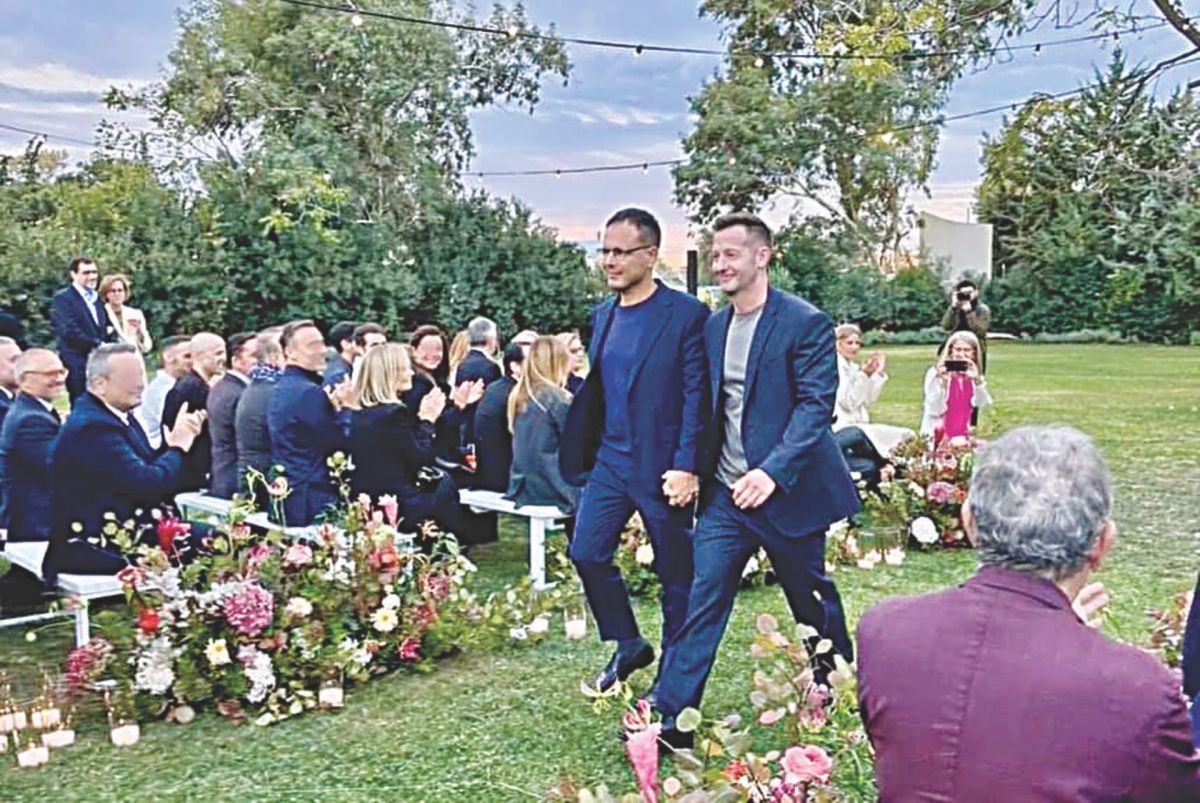 Μάλιστα, ο «γαμπρός νούμερο 2», ο Μιχάλης, που είναι πιανίστας κλασικής μουσικής, έπαιξε πιάνο τόσο για τον σύζυγό του Αλέξη όσο και για τους καλεσμένους τους στη ρομαντική αυτή τελετή.