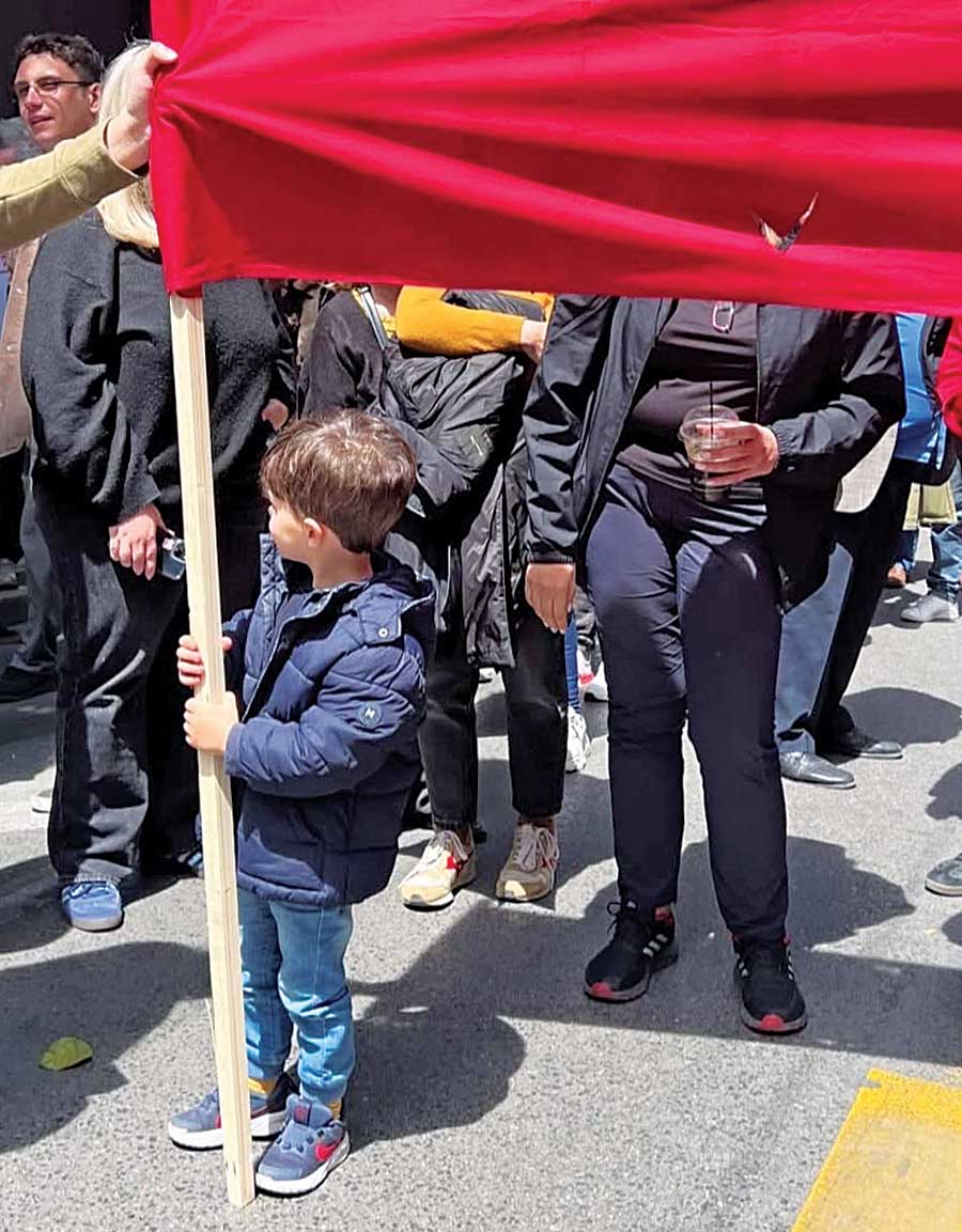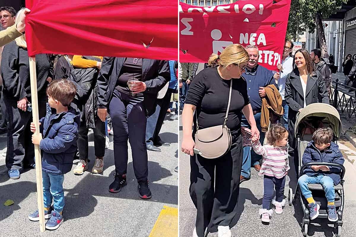 Ακολουθώντας τα χνάρια των γονιών του, ο μικρούλης-αγωνιστής πήρε μέρος στην πορεία για την Πρωτομαγιά, κρατώντας μάλιστα και το σχετικό πανό.