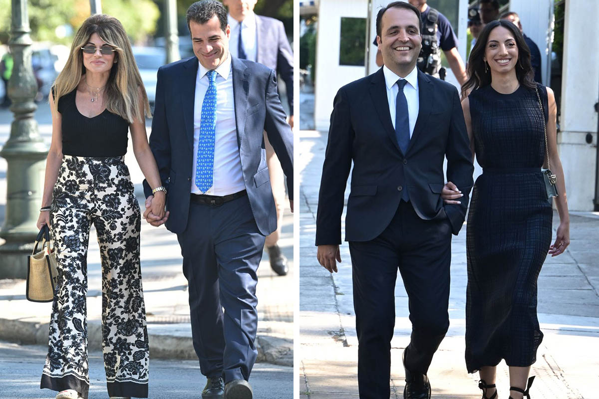 Παρ’ όλα αυτά, εκείνοι, δηλαδή ο Θάνος Πλεύρης και η καλοχτενισμένη σύζυγός του, ο Χάρης Θεοχάρης με την κόρη του και ο Χρήστος Δερμεντζόπουλος, δεν κατάφεραν να κρύψουν τη χαρά της υπουργοποίησης, παρά όσα γίνονται. Ο νέος υπουργός Μετανάστευσης και Ασύλου Θάνος Πλεύρης, ο υφυπουργός Εξωτερικών Χάρης Θεοχάρης και ο Χρήστος Δερμεντζόπουλος, που ορίστηκε στη θέση του υφυπουργού Ψηφιακής Διακυβέρνησης, με τα μέλη των οικογενειών τους και πολλά γέλια… ευτυχίας πάτησαν στο Προεδρικό Μέγαρο και ορκίστηκαν.