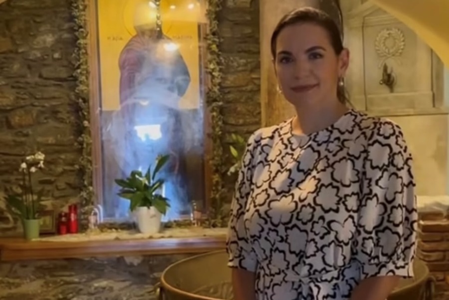 Η υπουργός Τουρισμού ταξίδεψε μέχρι την Τήνο και άναψε κερί στον ναό συγκινημένη, καθώς σε αυτή την εκκλησία η Ολγα βαφτίστηκε.