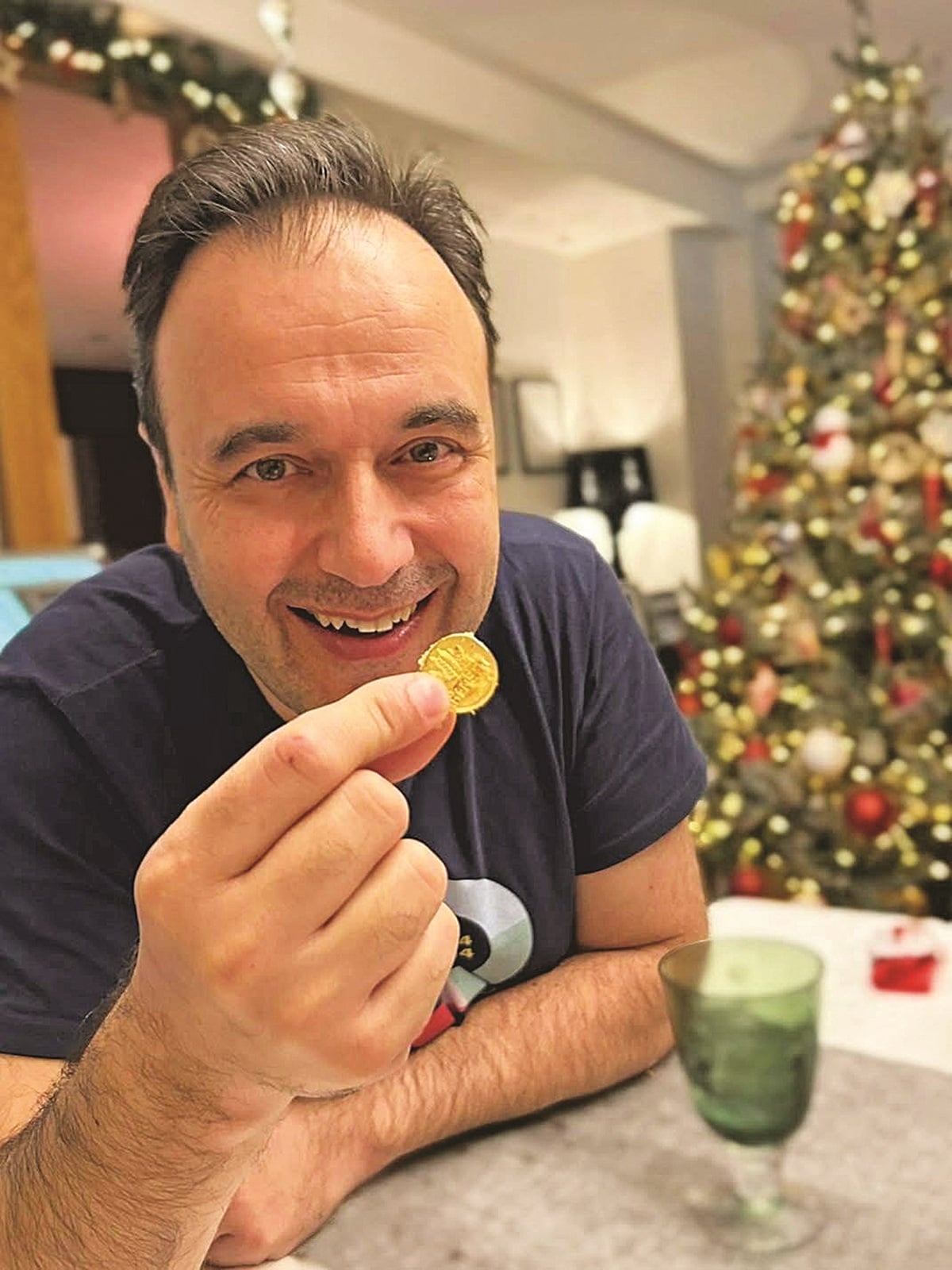 Το βράδυ της Πρωτοχρονιάς, το πρώτο κομμάτι που κόπηκε -και ήταν το δικό του- περιείχε το τυχερό φλουρί του 2026, κάνοντας τον υπουργό να χαίρεται σαν παιδάκι! Πέρασε φυσικά τις γιορτές στην πόλη του, τα Τρίκαλα, με την οικογένειά του.