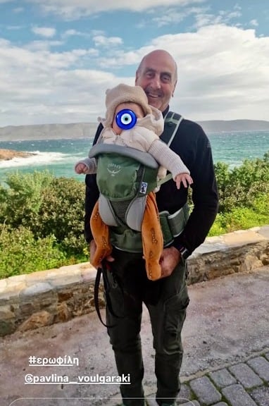 Ο Γιώργος Βουλγαράκης φόρεσε το μάρσιπο και έχοντας το εγγόνι του μέσα έκανε βόλτες στη φύση και δημοσίευσε φωτογραφίες στο instagram με λεζάντα: «Αλλήλων τα βάρη βαστάζετε ( υπο την προϋπόθεση ότι δεν έχετε πρόβλημα με τη μέση σας. @pavlina__voulgaraki #ερωφίλη»