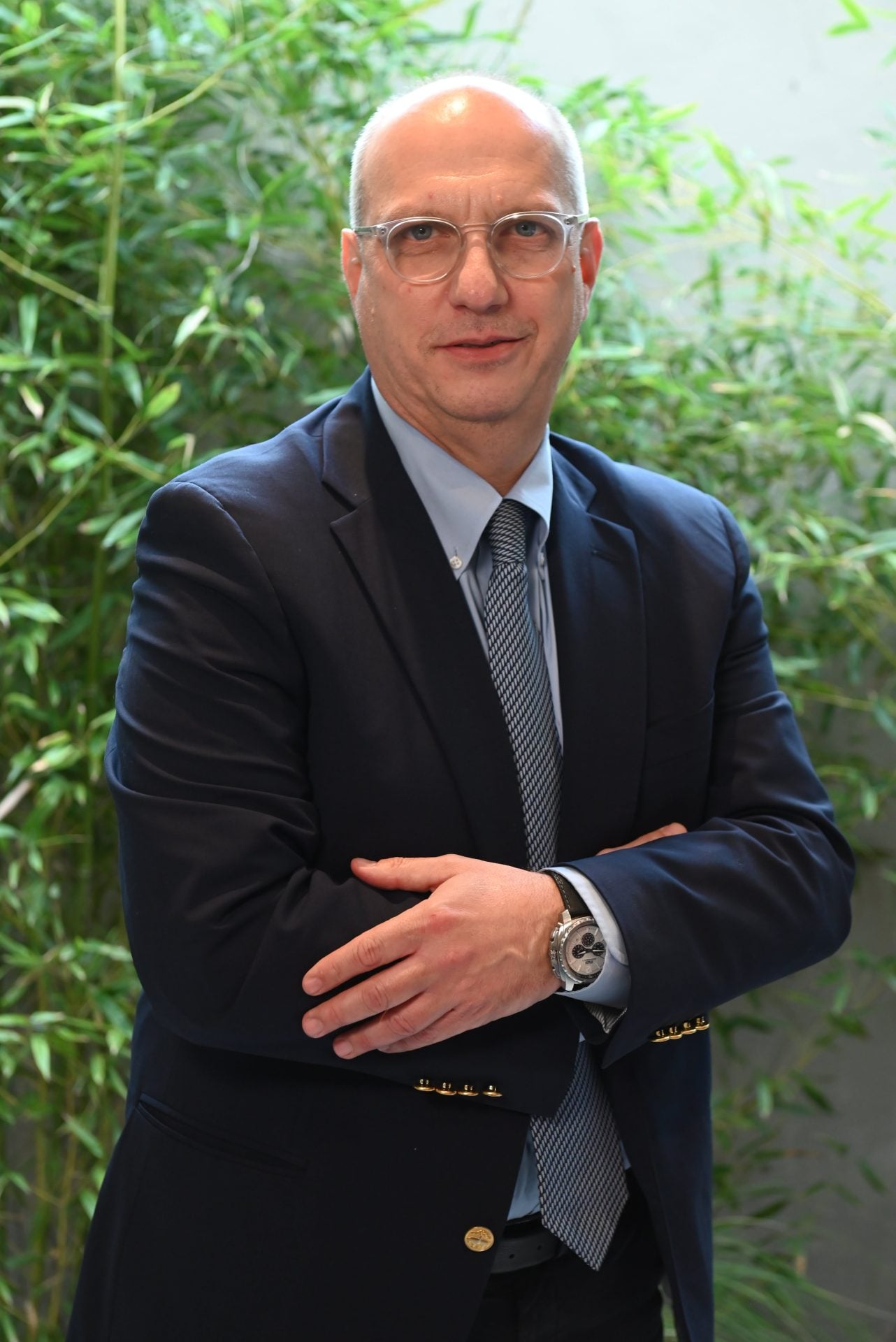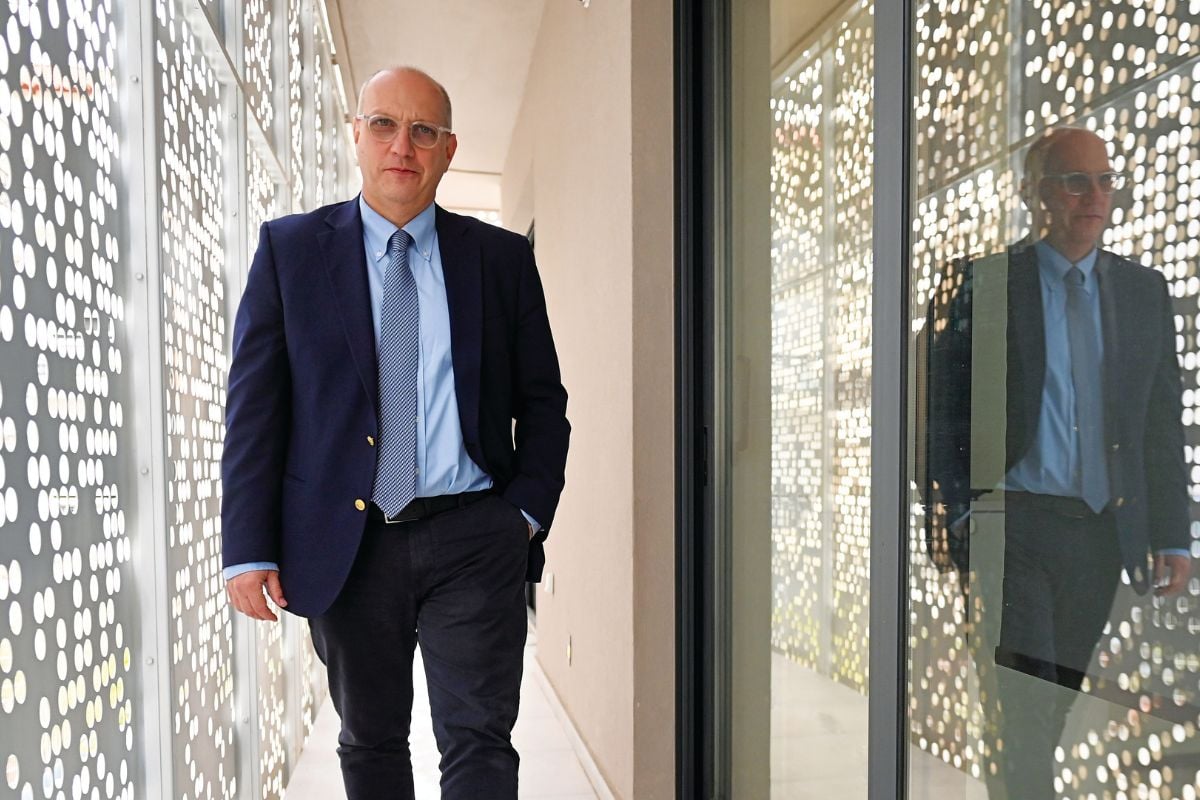 Ο Γιάννης Οικονόμου στους εξωτερικούς χώρους των νέων γραφείων της «Espresso» στο Παλαιό Φάληρο