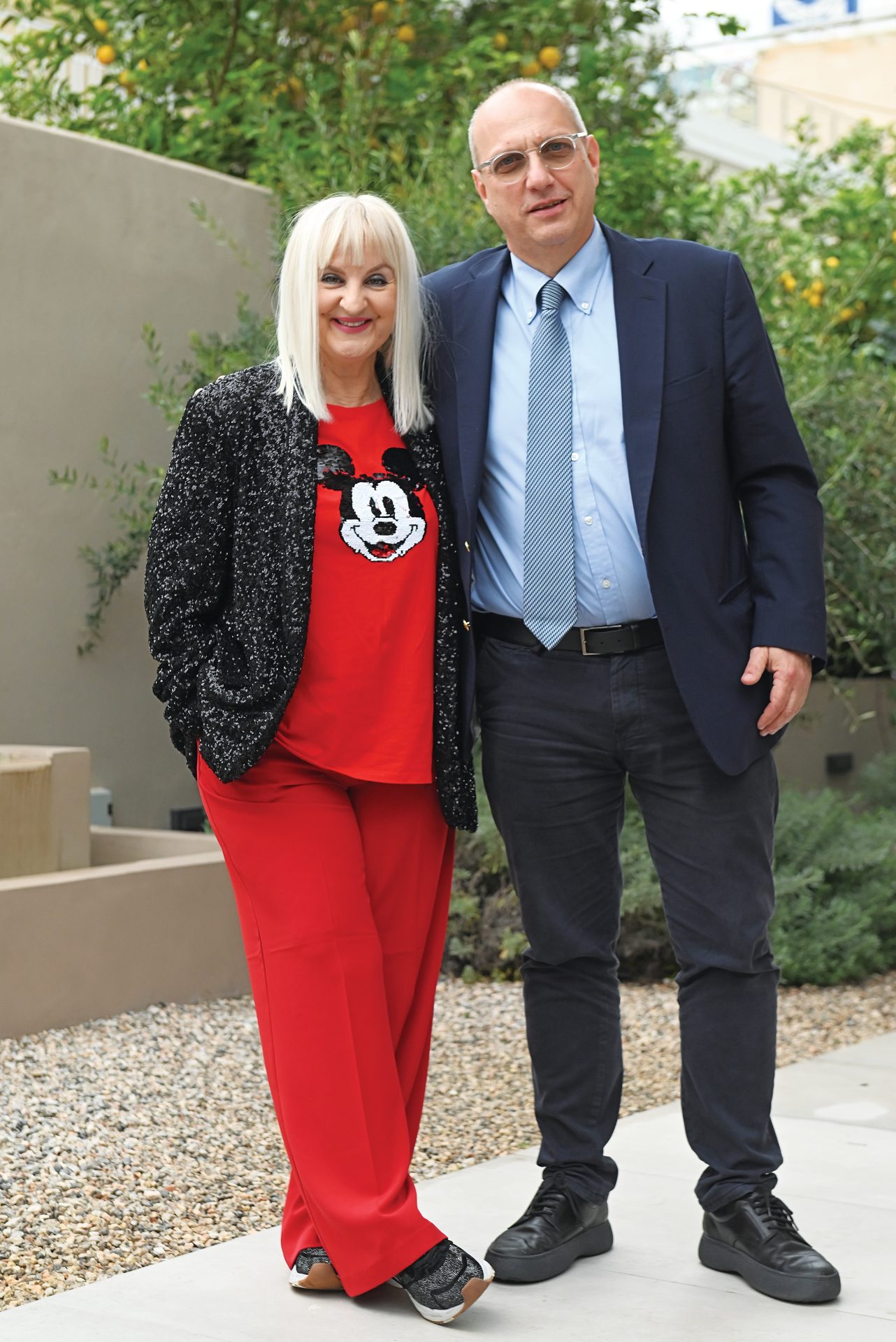 Ο πρώην υπουργός με τη Βίβιαν Μπενέκου στον κήπο του κτιρίου όπου στεγάζεται η «Espresso» και αφού προηγουμένως έχει ξεναγηθεί στα γραφεία μας