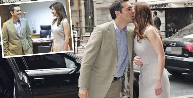 «Τρέμε, Περιστέρα»! Η όμορφη υπουργός Εργασίας Εφη Αχτσιόγλου, με ένα υπέρκομψο χρώματος ιβουάρ φόρεμα, υποδέχτηκε με φιλί τον πρωθυπουργό Αλέξη Τσίπρα, ο οποίος την επισκέφθηκε στο υπουργείο της.
