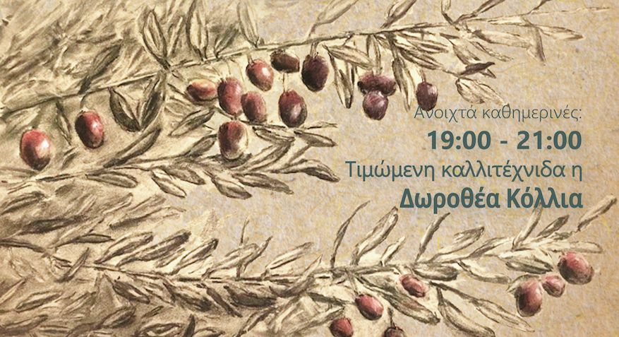 Τιμώμενη καλλιτέχνιδα της εκδήλωσης είναι η συμπολίτισσά μας Δωροθέα Κόλλια, με σπουδές στη σχολή Βακαλό (BA in Arts and Design, University of Derby, UK) και παράλληλα, με μετεκπαίδευση στο Art Therapy.