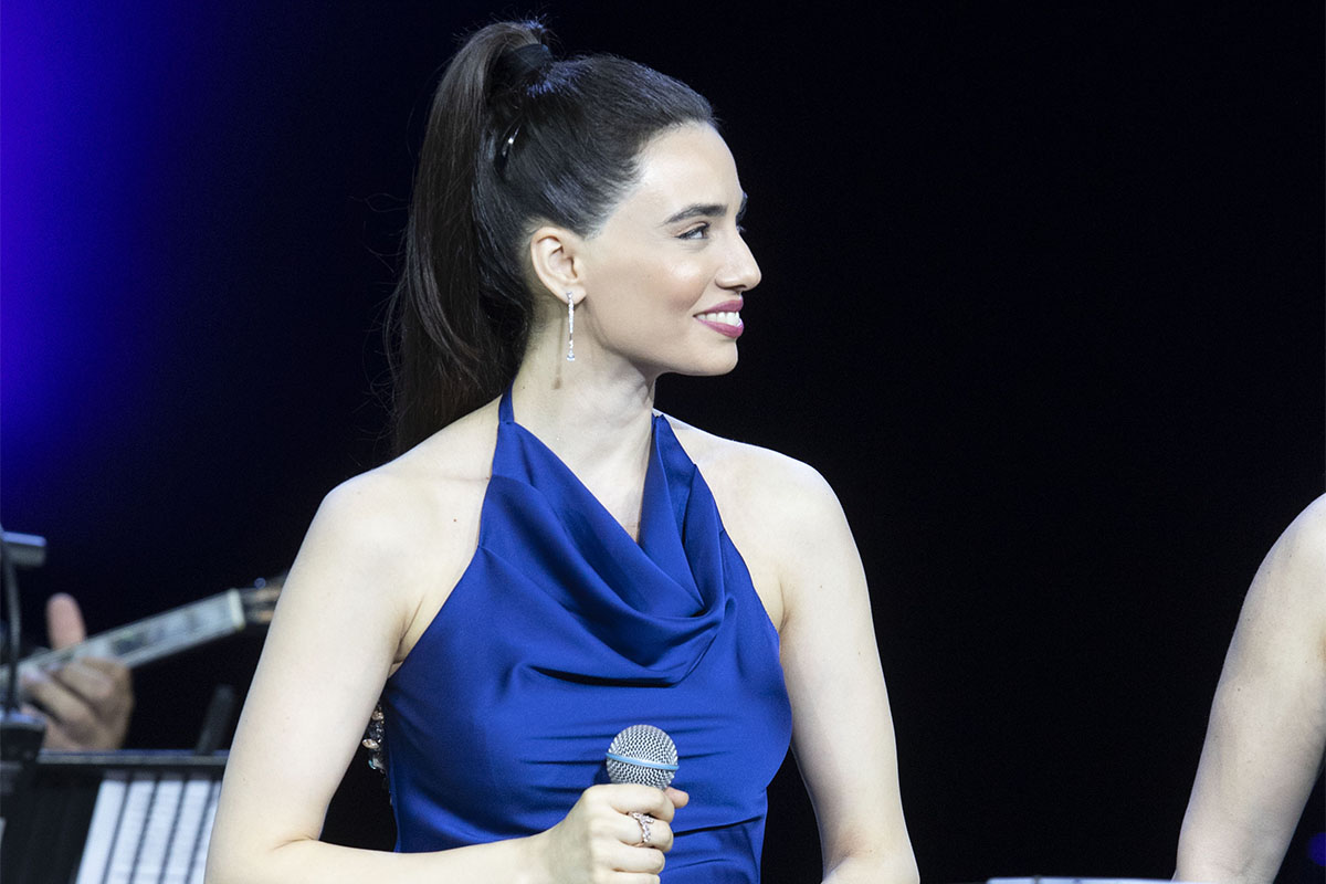 Κορυφαία στιγμή της βραδιάς είναι η συνάντησή της στη σκηνή με τον σπουδαίο Ελληνα συνθέτη Γιώργο Χατζηνάσιο.