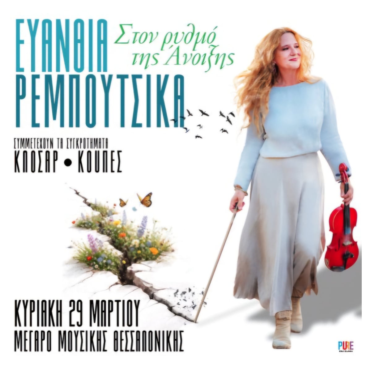 Η Ευανθία Ρεμπούτσικα προσκαλεί το κοινό σε μια μουσική βραδιά γεμάτη φως, συναίσθημα και ανοιξιάτικη ενέργεια, την Κυριακή 29 Μαρτίου στο Μέγαρο Μουσικής Θεσσαλονίκης.