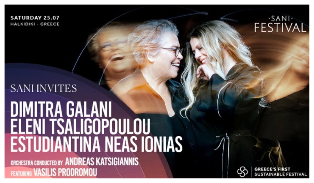 Η εμφάνιση της Δήμητρας Γαλάνη και της Ελένης Τσαλιγοπούλου προστίθεται στο πολυσυλλεκτικό πρόγραμμα του Sani Festival 2026, το οποίο φέρνει και φέτος στη σκηνή του Λόφου της Σάνης σημαντικούς καλλιτέχνες από την Ελλάδα και το εξωτερικό. Μετά την ανακοίνωση του Robert Plant, πρώην frontman των Led Zeppelin, που θα ανοίξει το φεστιβάλ στις 11 Ιουλίου μαζί με τους Saving Grace και τη Suzi Dian, των Soul II Soul, που θα εμφανιστούν στις 8 Αυγούστου, και της Βίκυ Λέανδρος, που θα κλείσει τη φετινή διοργάνωση στις 15 Αυγούστου με μία εντυπωσιακή παραγωγή, οι ανακοινώσεις για το lineup συνεχίζονται.