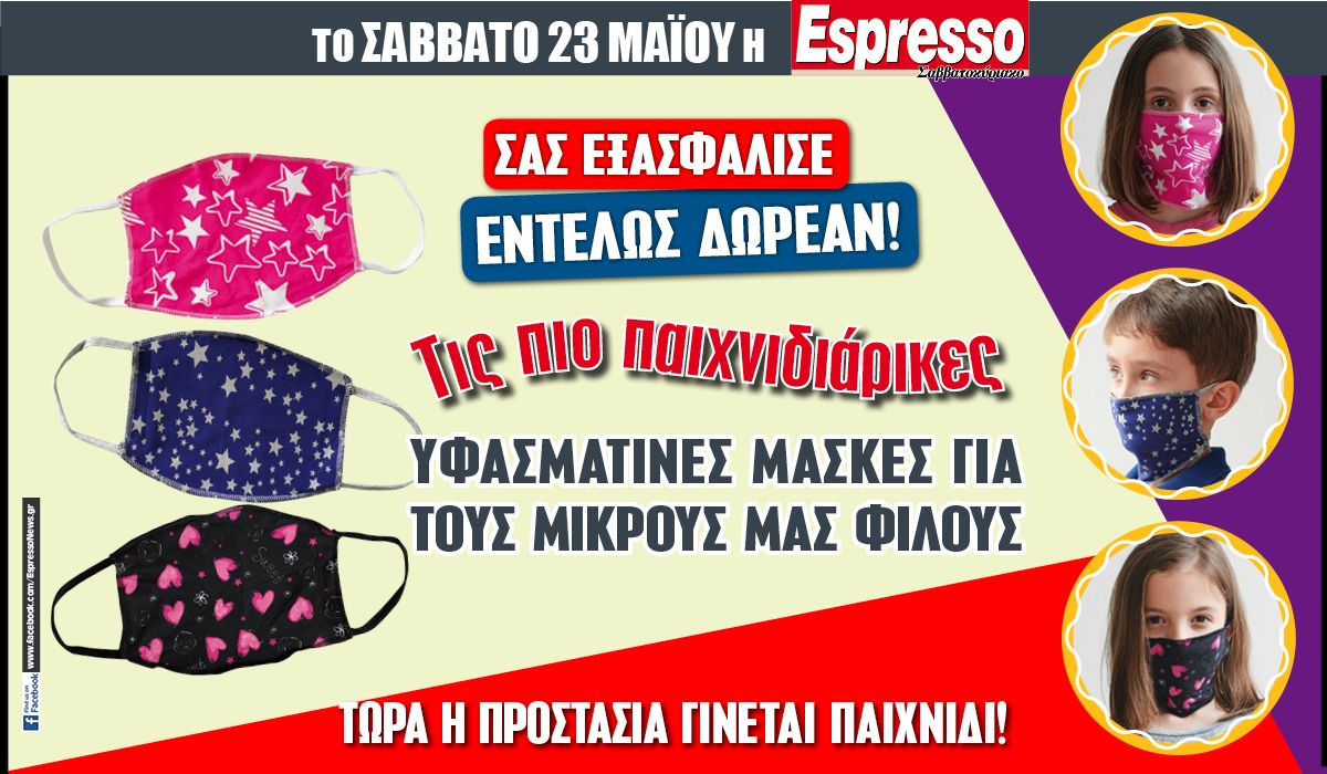 Η Espresso σας εξασφάλισε ΕΝΤΕΛΩΣ ΔΩΡΕΑΝ τις πιο παιχνιδιάρικες υφασμάτινες μάσκες για τους μικρούς μας φίλους!