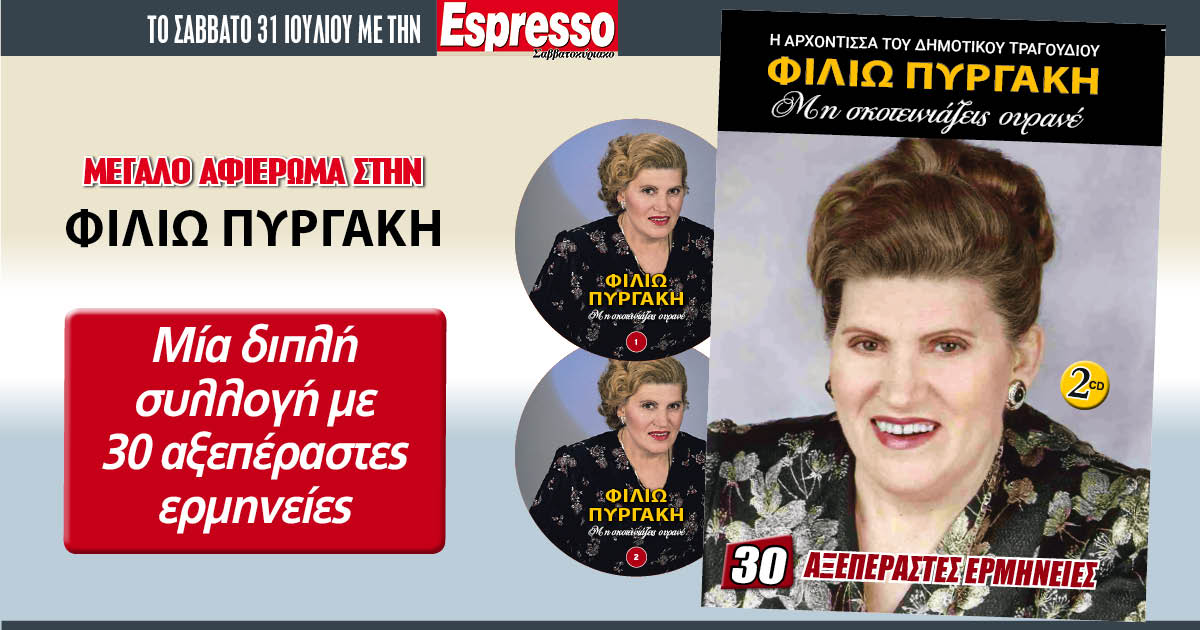 Το Σάββατο 31.07 με την Espresso: Φιλιώ Πυργάκη – διπλή συλλογή!
