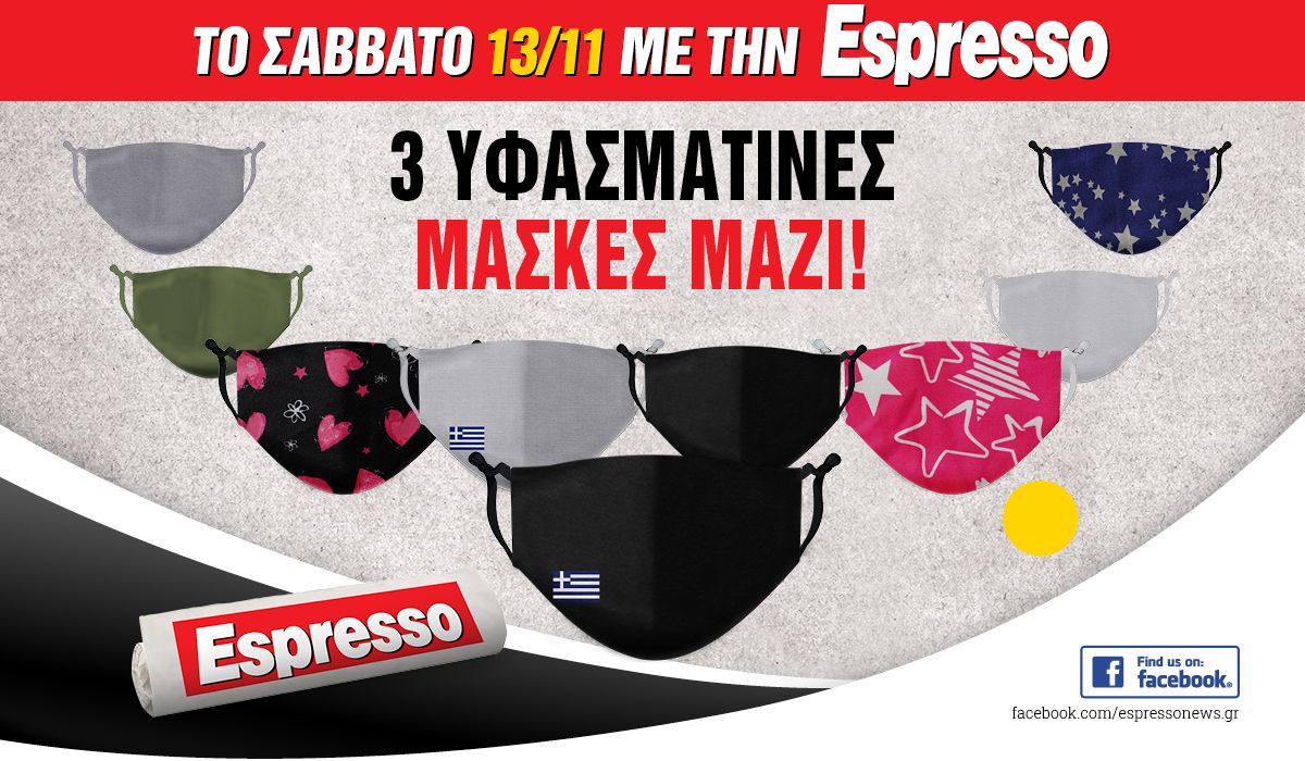 Το Σάββατο 13.11 με την Espresso: 3 υφασμάτινες πλενόμενες μάσκες μαζί!