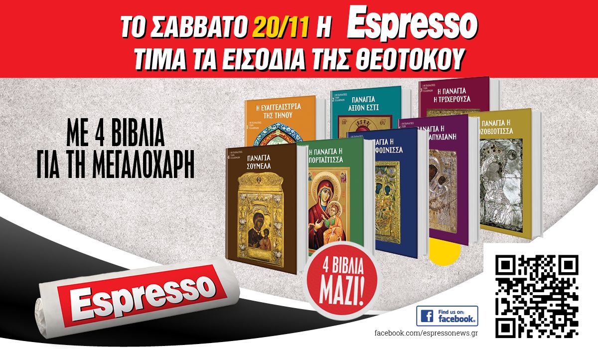 Το Σάββατο 20.11 η Espresso τιμά τα Εισόδια της Θεοτόκου με 4 βιβλία για την Μεγαλόχαρη!