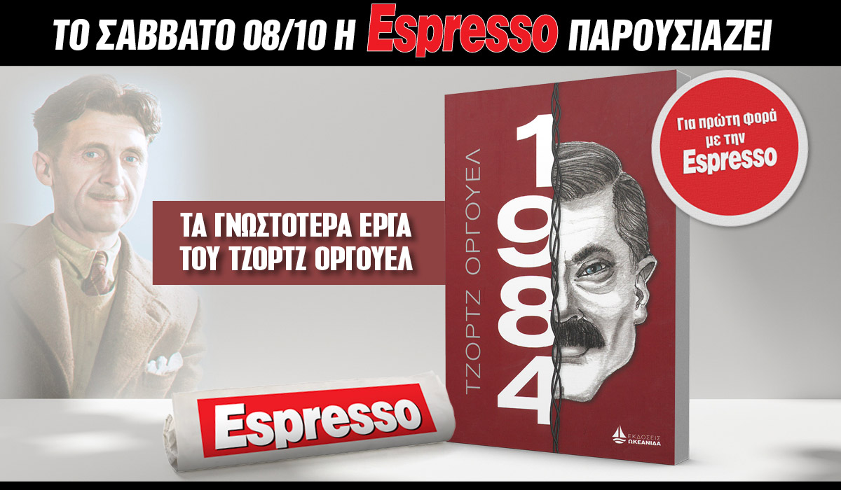 Το Σάββατο 08.10 η Espresso παρουσιάζει τα γνωστότερα έργα του Τζορτζ Όργουελ σε σκληρόδετη αυθεντική έκδοση • Το δημοφιλές μυθιστόρημα «1984» στις 8/10