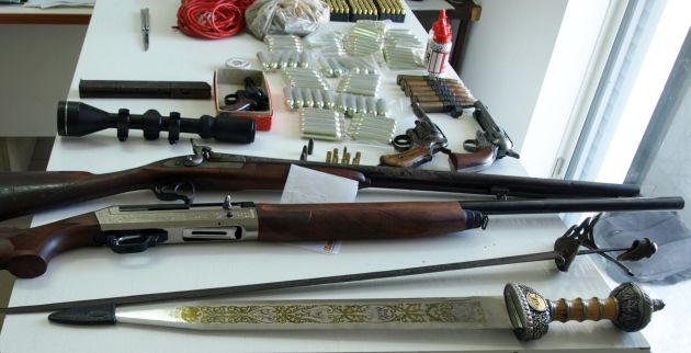 Ολα τα όπλα θα σταλούν στα εγκληματολογικά εργαστήρια της ΕΛ.ΑΣ. προκειμένου να διαπιστωθεί αν έχουν χρησιμοποιηθεί στο παρελθόν σε αξιόποινες πράξεις. Μέχρι αργά χθες τη νύχτα οι αστυνομικοί συνέχιζαν τις έρευνες για τον εντοπισμό και τη σύλληψη του 64χρονου. Σήμερα πάντως η σύζυγός του αναμένεται να οδηγηθεί ενώπιον του εισαγγελέα προκειμένου να απολογηθεί για τον οπλισμό που βρέθηκε στα σπίτια τους. Η ίδια ανακρινόμενη φέρεται να υποστήριξε ότι ο σύζυγός της είναι συλλέκτης και γι’ αυτό είχε στην κατοχή του όλα τα παραπάνω όπλα και φυσίγγια. Η αστυνομική επιχείρηση οργανώθηκε από το Τμήμα Ασφαλείας Σπάρτης και το Αστυνομικό Τμήμα Γυθείου, με τη συμμετοχή αστυνομικών των Ομάδων Πρόληψης και Καταστολής Εγκληματικότητας των Αστυνομικών Διευθύνσεων Αρκαδίας, Λακωνίας και Μεσσηνίας, καθώς και της Υποδιεύθυνσης Ασφαλείας Καλαμάτας. Προανάκριση για την υπόθεση διενεργεί το Τμήμα Ασφαλείας Σπάρτης.