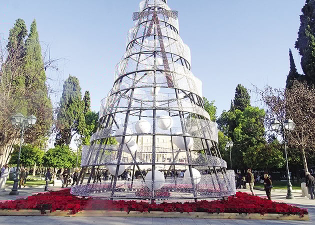 Το πάρτι της Αθήνας ξεκινά από την πλατεία Συντάγματος. Το χριστουγεννιάτικο δέντρο που έστησε και φέτος ο Δήμος Αθηναίων αποτελεί πόλο έλξης για χιλιάδες οικογένειες και ερωτευμένα ζευγάρια, που ποζάρουν για μια αναμνηστική selfie με φόντο τον λαμπερό στολισμό.