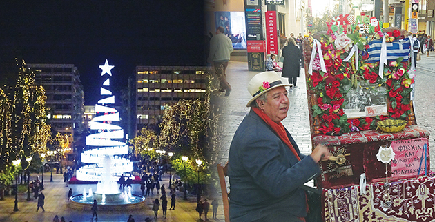 Το χριστουγεννιάτικο σκηνικό συμπληρώνουν οι πλανόδιοι πωλητές και μουσικοί, που συντροφεύουν με τη μελωδία τους τις χριστουγεννιάτικες βόλτες των περαστικών. Η «Espresso» περπάτησε στη στολισμένη Αθήνα και κατέγραψε τις ιστορίες των ανθρώπων που περνούν την εορταστική περίοδο στα στενά του Συντάγματος και της Ερμού, περιμένοντας ένα καλύτερο αύριο το 2018, για τους ίδιους αλλά και για ολόκληρη την ανθρωπότητα.