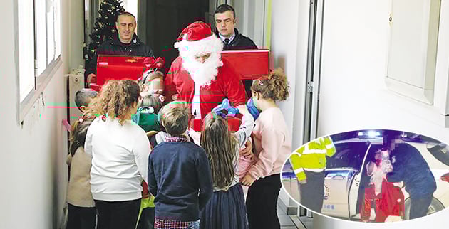 Στον σάκο του υπήρχαν πραγματικά δώρα, τα οποία μοιράστηκαν στα παιδιά των αστυνομικών, που ενθουσιασμένα παρακολουθούσαν την κάθε του κίνηση.
