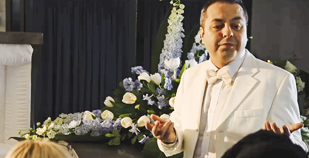 Το σποτάκι, που θυμίζει κάτι από μαύρη κωμωδία, δείχνει έναν άντρα ντυμένο στα λευκά, ο οποίος παρευρίσκεται στην κηδεία του ως… φάντασμα. Εκεί, λοιπόν, εκθειάζει τη νεκροφόρα λέγοντας «τι ωραίο αυτοκίνητο», το στολισμένο φέρετρο με τη φράση «τι ωραία διακόσμηση, τι όμορφα λουλούδια!», ενώ το… τερματίζει μόλις βλέπει τον εαυτό του στην κάσα. «Ποτέ μου δεν υπήρξα πιο όμορφος!» λέει με καμάρι. Το Γραφείο Τελετών Γκέσιος, που λειτουργεί εδώ και 30 χρόνια στη Θεσσαλονίκη, αποφάσισε να ανοίξει λίγο τις δουλειές του χρησιμοποιώντας το… marketing! Η καινοτόμα ιδέα ανήκει στον γιο του ιδιοκτήτη Κλέωνα Γκέσιο, ο οποίος είναι και ο σεναριογράφος των διαφημίσεων!