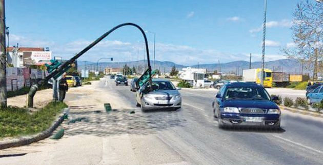 Ξεκόλλησε φανάρι στη Λάρισα και πλάκωσε αυτοκίνητο
