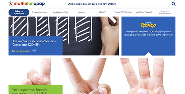 Ο ΟΠΑΠ, η κορυφαία εταιρεία τυχερών παιχνιδιών στην Ελλάδα, παρουσιάζει τη νέα του διαδικτυακή πλατφόρμα, mathetonopap.gr, μέσω της οποίας το κοινό έχει τη δυνατότητα να υποβάλλει ερωτήσεις και να λύσει κάθε του απορία σχετικά με τις δραστηριότητες και τα παιχνίδια του.Το mathetonopap.gr αποτελεί ένα κανάλι διαλόγου και παρέχει στους επισκέπτες αναλυτικές πληροφορίες καθώς και multimedia υλικό, που απαντά σε συχνές απορίες όπως: