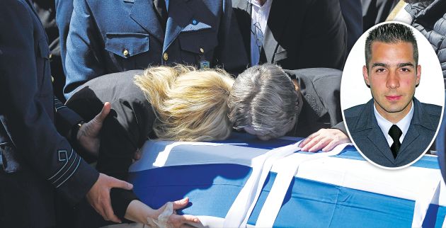 Η εξόδιος ακολουθία έγινε στις 2 το μεσημέρι, ενώ νωρίτερα άγημα της Πολεμικής Αεροπορίας απέδωσε τιμές μπροστά από τη σορό του 34χρονου, η οποία εκτέθηκε σε λαϊκό προσκύνημα.