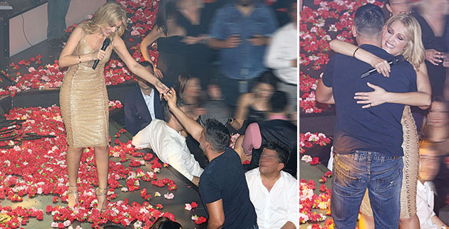 Τα γενέθλιά του είχε πριν από λίγες μέρες και ο Σέρος Μύρτας, κολλητός φίλος του Αλέξανδρου Αγγλούπα. Ο ίδιος, μάλιστα, επέλεξε να τα γιορτάσει στο κέντρο Fantasia, όπου τραγουδά μια παλιά μεγάλη αγάπη του, η Νατάσα Θεοδωρίδου. Ο επιχειρηματίας και η τραγουδίστρια μοιράστηκαν έναν θυελλώδη έρωτα που κράτησε 10 μήνες, από τα μέσα του 2007 ως τις αρχές του 2008. Ο 46χρονος Σέρος, λοιπόν, πήγε ν’ απολαύσει live το πρόγραμμά της και δεν σταμάτησε να της πετάει λουλούδια. Και η Νατάσα όμως φάνηκε να χαίρεται που τον είδε. «Είναι εδώ ένας πολύ καλός μου φίλος. Μια πολύ καλή παλιά ιστορία. Χαίρομαι που κάνεις εδώ τα γενέθλιά σου» είπε από μικροφώνου η διάσημη τραγουδίστρια. Οσο για την αντίδραση του Σέρου; Ανέβηκε στην πίστα και την αγκάλιασε τρυφερά…