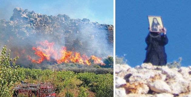 ❱❱ Κρατώντας εικονίσματα στα χέρια και ψάλλοντας προσευχές «αντιμετώπισαν» την πυρκαγιά που ξέσπασε κοντά στο μοναστήρι τους οι καλόγριες της Μονής Μεταμορφώσεως στα Χανιά. Η φωτιά ξέσπασε στις 5 το απόγευμα της Παρασκευής σε πλαγιά στο Βαρύπετρο Κυδωνίας, που βρίσκεται πολύ κοντά στη μονή. Εντρομες οι μοναχές βγήκαν στο προαύλιο με εικονίσματα της Παναγίας και σταυρούς, παρακαλώντας τον Θεό να μη φτάσουν οι φλόγες στο μοναστήρι τους.