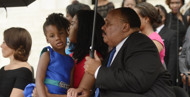 Στη λαμπερή τελετή για την επέτειο των πενήντα χρόνων από την ιστορική ομιλία του Μάρτιν Λούθερ Κινγκ «Εχω ένα όνειρο» ήταν συγκεντρωμένη η αφρόκρεμα της πολιτικής ζωής και της showbiz. Ωστόσο εκείνη που κατάφερε να κλέψει την παράσταση δεν ήταν άλλη από την τρισχαριτωμένη πεντάχρονη εγγονή του Μάρτιν Λούθερ Κινγκ Τζούνιορ. Η Γιολάντα Ρενέ Κινγκ κατάφερε να σταθεί στο ύψος των περιστάσεων και δεν φάνηκε να τα χάνει ούτε όταν ο Μπαράκ Ομπάμα την πλησίασε για να την πειράξει, ενώ καθόταν κυρία στην πρώτη σειρά των καθισμάτων, ανάμεσα στους επίσημους προσκεκλημένους του event.