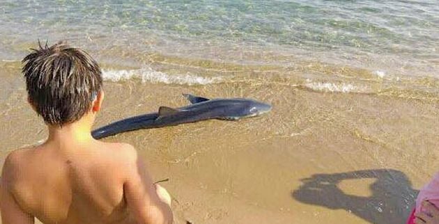 ❱❱ Ενας απρόσμενος και συνάμα τρομακτικός επισκέπτης έκανε την εμφάνισή του το πρωί της Κυριακής στην παραλία Απτερα, μεταξύ Χρυσής Ακτής και Νέας Χώρας στα Χανιά. Ηταν ένας καρχαρίας μήκους περίπου δύο μέτρων που είχε ξεβραστεί στην ακτή και φαινόταν αδύναμος να επιστρέψει στα βαθιά.