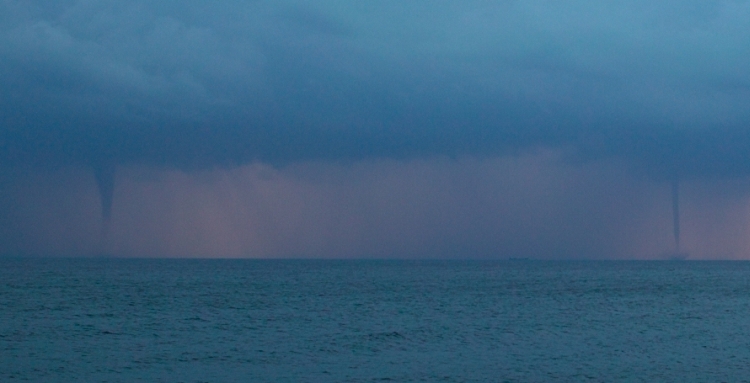 Οι δύο υδροσίφωνες, όπως είναι η επιστημονική ονομασία του φαινομένου, εμφανίστηκαν νωρίς το πρωί του περασμένου Σαββάτου κοντά στο παραθαλάσσιο τουριστικό θέρετρο του Αγίου Ιωάννη. Το ευτύχημα είναι ότι διαλύθηκαν χωρίς να πλησιάσουν τη στεριά, καθώς σε διαφορετική περίπτωση θα μπορούσαν να προκαλέσουν ζημιές.