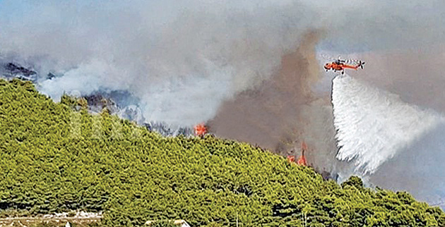 ❱❱ Μνήμες από τις καταστροφικές πυρκαγιές που έπληξαν πέρυσι τη Ζάκυνθο ξύπνησαν οι δύο φωτιές που μαίνονταν ως αργά χθες το βράδυ στο νησί του Ιονίου. Οι πυρκαγιές, που πήραν γρήγορα μεγάλες διαστάσεις λόγω των ισχυρών ανέμων, ξέσπασαν σχεδόν ταυτόχρονα το απόγευμα σε δασικές περιοχές και οι φλόγες έφτασαν κοντά στα σπίτια του χωριού Κοιλιωμένο.