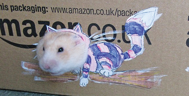 Τα ρούχα για pets δεν είναι νέα τάση. Τι γίνεται όμως με μερικά είδη κατοικιδίων, όπως τα χάμστερ, που είναι δυσκολότερο να «ντυθούν»; Μπλόγκερ βρήκε τρόπο να μεταμορφώσει το δικό της, χωρίς καν να το ταλαιπωρήσει με ειδικά παντελονάκια και μπλουζάκια. Η ιδέα της δημιουργίας μιας ready to wear κολεξιόν από χαρτόκουτα γεννήθηκε στο μυαλό της Τζένι όταν η κόρη της τη ρώτησε αν θα μπορούσαν να ντύσουν κανονικά το χάμστερ τους, ονόματι Ντέιβιντ Μπάουι. Αφού ζωγράφισε στα χαρτόκουτα διάφορων ειδών σχέδια, όπως γοργόνες, πριγκίπισσες και κλόουν, ενθάρρυνε τον… Ντέιβιντ Μπάουι να βάλει το κεφάλι του στις τρύπες που είχε φτιάξει στα σημεία που θα βρίσκονταν τα κεφάλια των σχεδίων και δημοσίευσε το ξεκαρδιστικό αποτέλεσμα στο προφίλ της στο tumblr Mythsandfabrications.
