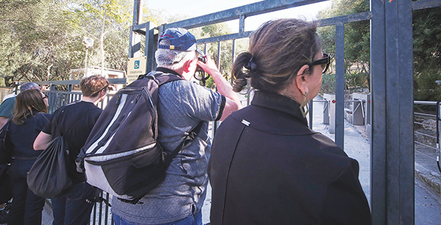 ❱❱ Πίσω από τις κλειστές πόρτες των αρχαιολογικών μνημείων αναγκάστηκαν να στήσουν τις φωτογραφικές τους μηχανές οι τουρίστες που τα επισκέφτηκαν…… αφού η απεργία των υπαλλήλων του υπουργείου Πολιτισμού δεν τους επέτρεψε την είσοδο. Πολλοί επισκέπτες που θέλησαν να δουν την Ακρόπολη στην Αθήνα, τον Λευκό Πύργο στην Θεσσαλονίκη και άλλα ξακουστά μνημεία και μουσεία της χώρας αντίκρισαν έκπληκτοι τα λουκέτα, αφού φυσικά ήταν απίθανο να γνώριζαν για την κινητοποίηση.