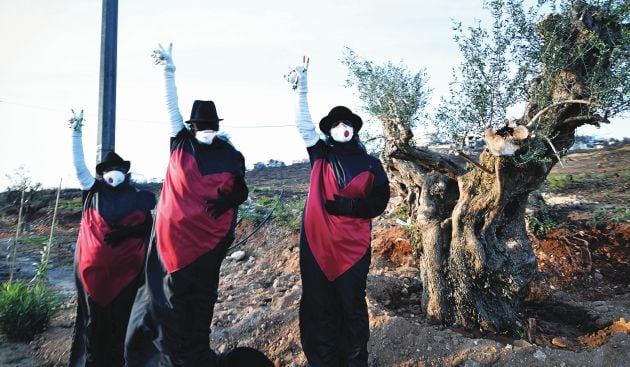 Το δικό του μήνυμα κατάφερε να μεταφέρει με τα κουδούνια που είχε κρεμάσει πάνω του και ένας ηλικιωμένος άνδρας, ο οποίος κρατώντας στα χέρια κρητική κατσούνα και ένα στεφάνι από κλαδί ελιάς βρέθηκε μέσα στους χιλιάδες δρομείς σε κεντρικό σημείο της πόλης.