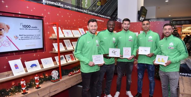 ❱❱ Η «πράσινη» ΠΑΕ στηρίζει την πρωτοβουλία του ΟΠΑΠ και προσφέρει ξεχωριστά δώρα αγάπης στα παιδιά «Του Χαμόγελου του Παιδιού»Οι παίκτες της ΠΑΕ Παναθηναϊκός άφησαν για λίγο στην άκρη τις αγωνιστικές τους υποχρεώσεις και επισκέφθηκαν την έκθεση με τα Ευχοστολίδια του ΟΠΑΠ στο Athens Metro Mall.