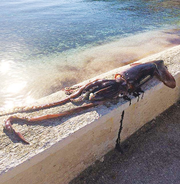 ❱❱ Ούτε… παραγγελία να την είχε κάνει την ψαριά του ένας Κεφαλλονίτης, που άφησε με το στόμα ανοιχτό όσους αντίκρισαν το τερατώδες καλαμάρι που έβγαλε στη στεριά στην περιοχή της Αγίας Ευφημίας!