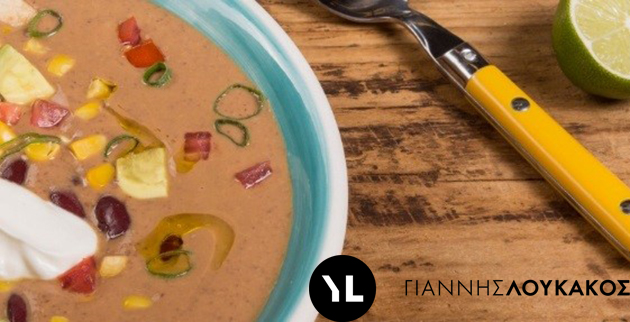 Σούπα από κόκκινα φασόλια με αβοκάντο και καλαμπόκι