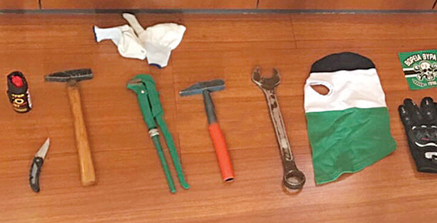 Σύμφωνα με πληροφορίες, οι αστυνομικοί παρακολουθούσαν ένα πρόσωπο που είχε εμπλακεί πρόσφατα σε άλλο περιστατικό οπαδικής βίας, το οποίο απασχόλησε την επικαιρότητα, και φοβούνταν αντίποινα. Ετσι, όταν αντιλήφθηκαν ότι τα πέντε άτομα ηλικίας από 18 έως 30 ετών ετοίμαζαν επίθεση και πήγαιναν να βρουν τον οπαδό των «ερυθρολεύκων», τους συνέλαβαν και βρήκαν στην κατοχή τους full face, γάντια, σφυριά, λοστούς και έναν σουγιά.