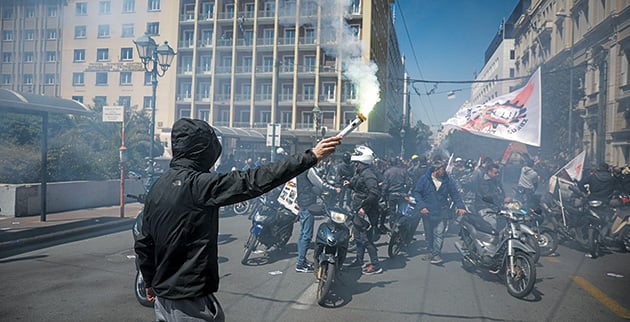 «Γκάζια» οργής στη μηχανοκίνητη πορεία των ντελιβεράδων
