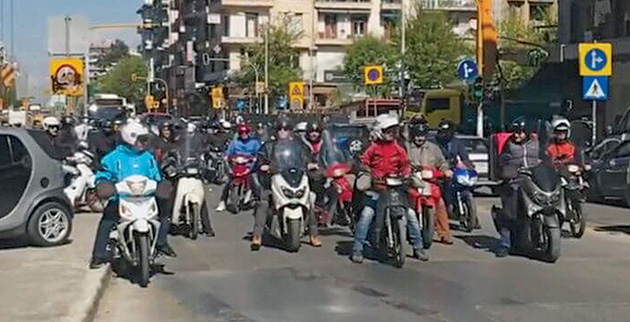 ❱❱ Με πάνω από 1.000 μηχανάκια γέμισε χθες το κέντρο της Αθήνας λόγω της μοτοπορείας που έκαναν οι ντελιβεράδες…… οι κούριερ και οι εξωτερικοί υπάλληλοι, στο πλαίσιο της 24ωρης απεργίας που είχαν προκηρύξει διεκδικώντας τα δικαιώματά τους σχετικά με τη σωματική τους ακεραιότητα.