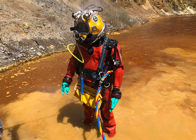 Δύτης με σκάφανδρο ετοιμάζεται για έρευνες στη λίμνη Μεμί στο Ξυλιάτο