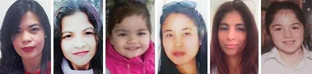 Από αριστερά: H Arian Palanas Lozano, η Mary Rose Tiburcio, η 6χρονη Sierra, η Livia Florentina Bunea και η 8χρονη Elena Natalia Bunea