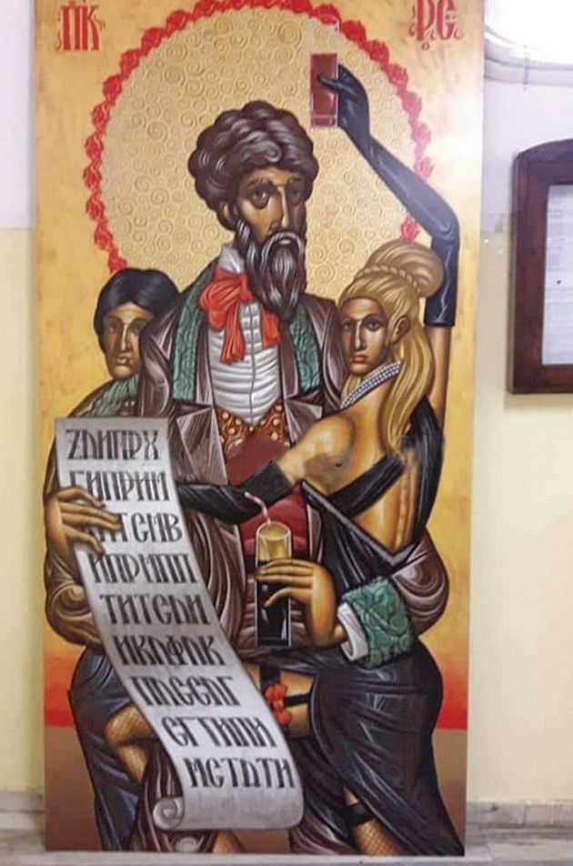 ❱❱ Βλάσφημα έργα, με μορφή αγίων που πίνουν φραπέ και γλεντούν, σε έκθεση στη Σχολή Εμποροπλοιάρχων στην ΥδραΑγιοι με φωτοστέφανο από κόκκινα τριαντάφυλλα, που πίνουν… φραπέ και το γλεντάνε με ποτά, περιτριγυρισμένοι από γυναίκες οι οποίες φορούν… ζαρτιέρες, είναι κάποια από τα θέματα μιας… διαφορετικής έκθεσης ζωγραφικής που λαμβάνει χώρα στην Υδρα και έχει προκαλέσει αντιδράσεις.
