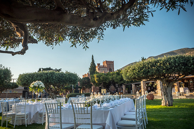 Ο πανέμορφος πύργος, οι περιποιημένοι κήποι, το πέτρινο κτίσμα με τη μεγάλη πέργκολα μπροστά στην πισίνα που σαν φυσική λίμνη ενσωματώνεται πλήρως στο περιβάλλον και το γραφικό εκκλησάκι όπου μπορείτε να πραγματοποιήσετε το μυστήριο του γάμου ή της βάπτισης, συνθέτουν ένα μοναδικό σκηνικό που εξυπηρετεί κάθε σας επιθυμία. Επιπλέον, το κτήμα διαθέτει σκεπαστό χώρο 525 τ.μ. με τέντα που μπορεί να φιλοξενήσει εκδήλωση 350-500 ατόμων.